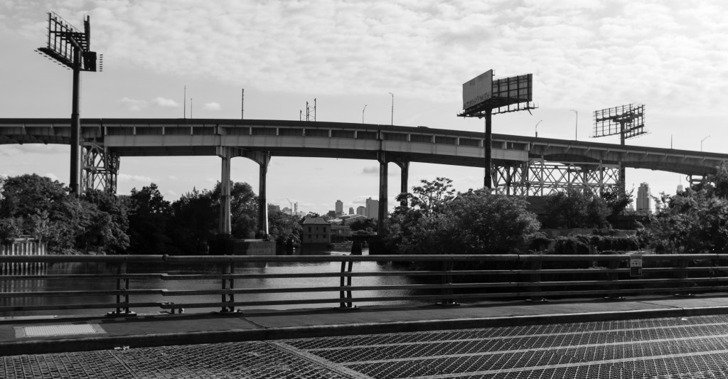 Stretching from the East River in Long Island City to Maspeth and East Williamsburg, the creek and its tributaries (“kills”) are crossed by seven bridges, which range from some of the oldest to some of the most modern in the city. The Kosciusko Bridge—where the top row of photos were captured—opened in 2017 and carries the Brooklyn-Queens Expressway (and also pedestrians and bikes), replacing a prior bridge of the same name. The Grand Street Bridge, dating from 1902 (and subject of the third row of photos), is a swing bridge, but has not been opened since 2012. Narrower than the road it serves and increasingly difficult to maintain, replacing the bridge has been discussed for years (and may finally be happening).
