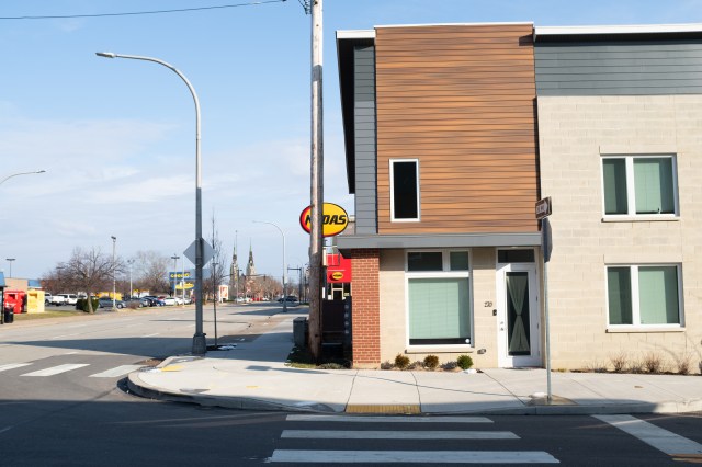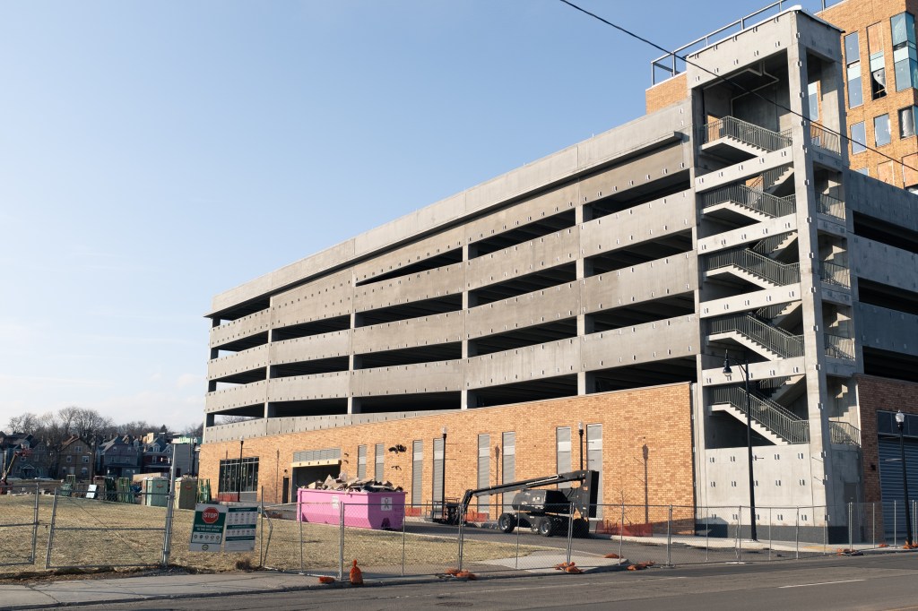 In 2010, the City of Pittsburgh began dismantling Penn Circle, converting some of the streets back to two-way traffic and restoring their original names. That work is still ongoing (the photo above, for example, shows a remaining one-way section of Broad Street, with a pedestrian shelter that still references the former name). Though Penn Circle is gone on paper, its footprint remains especially visible at major intersections. The intersection of Penn Avenue & Centre Avenue, once part of Penn Circle, is the epicenter of a lot of recent development, and new apartments have been constructed to take advantage of the neighborhood’s transit facilities. These apartments open on to an intersection frequently blocked with traffic, leaving pedestrians with long wait times to cross safely—a symptom of decades of car-focused planning.